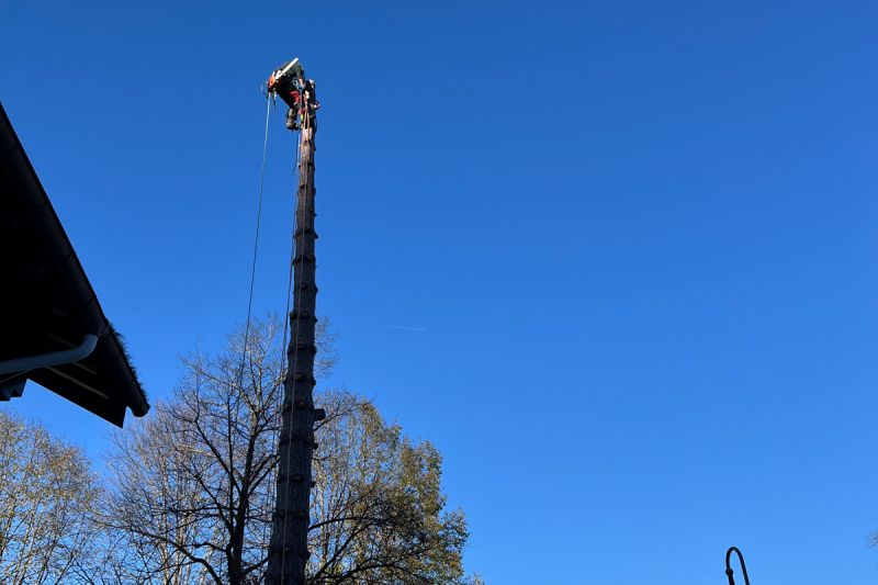 Verhindern sensible Gebäude eine normale Baumfällung kommt das Fällen mit einem Arbeitssystem am Baum zum tragen.